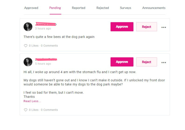 This resident has something urgent they needed help with from their neighbors but the post hasn't been approved yet. So going forward, she is most likely going to stop posting.